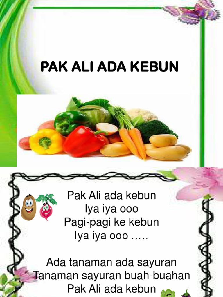 Lirik Lagu Pak Ali Ada Kebun - Lirik Lagu Pak Mamat Ada Kebun. View flipping ebook version of Modul Anak Bijak Cakap published by NCDRC UPSI on 2021-08-15. Di tengah perjalanan dia haus dan singgah sebentar di sungai yang airnya jernih.